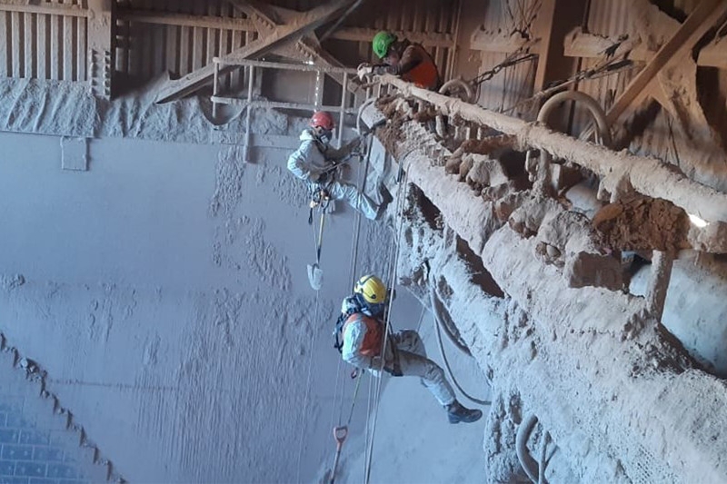 Realizamos limpiezas en zonas y áreas de difícil acceso, tales como, espacios confinados, correas transportadoras, stock pile, domos y tolvas de acopio de  material.