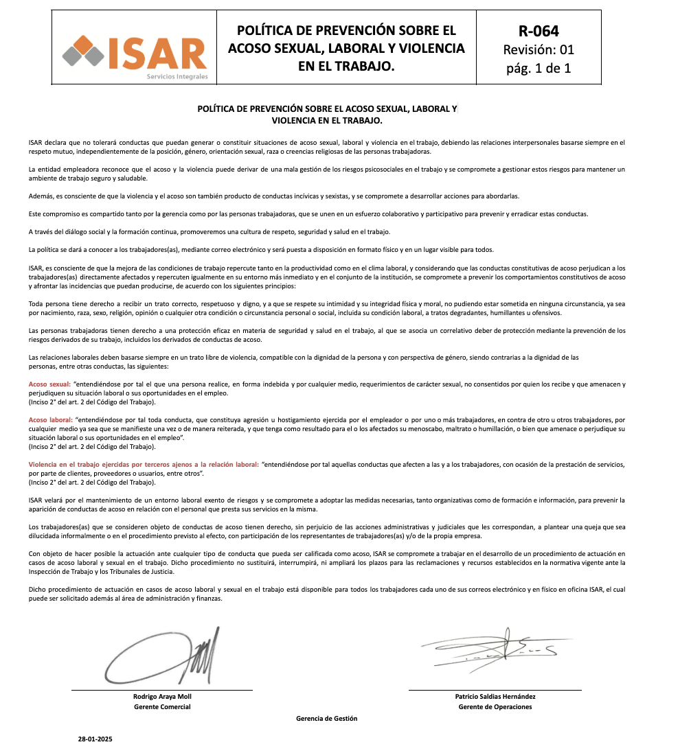 Más allá de prestar un servicio técnico, en ISAR creamos relaciones de largo plazo basadas en confianza, transparencia y resultados. Cada proyecto es una oportunidad para demostrar que la ingeniería aplicada al servicio puede transformar realidades operativas y hacerlas más seguras, sostenibles y rentables.