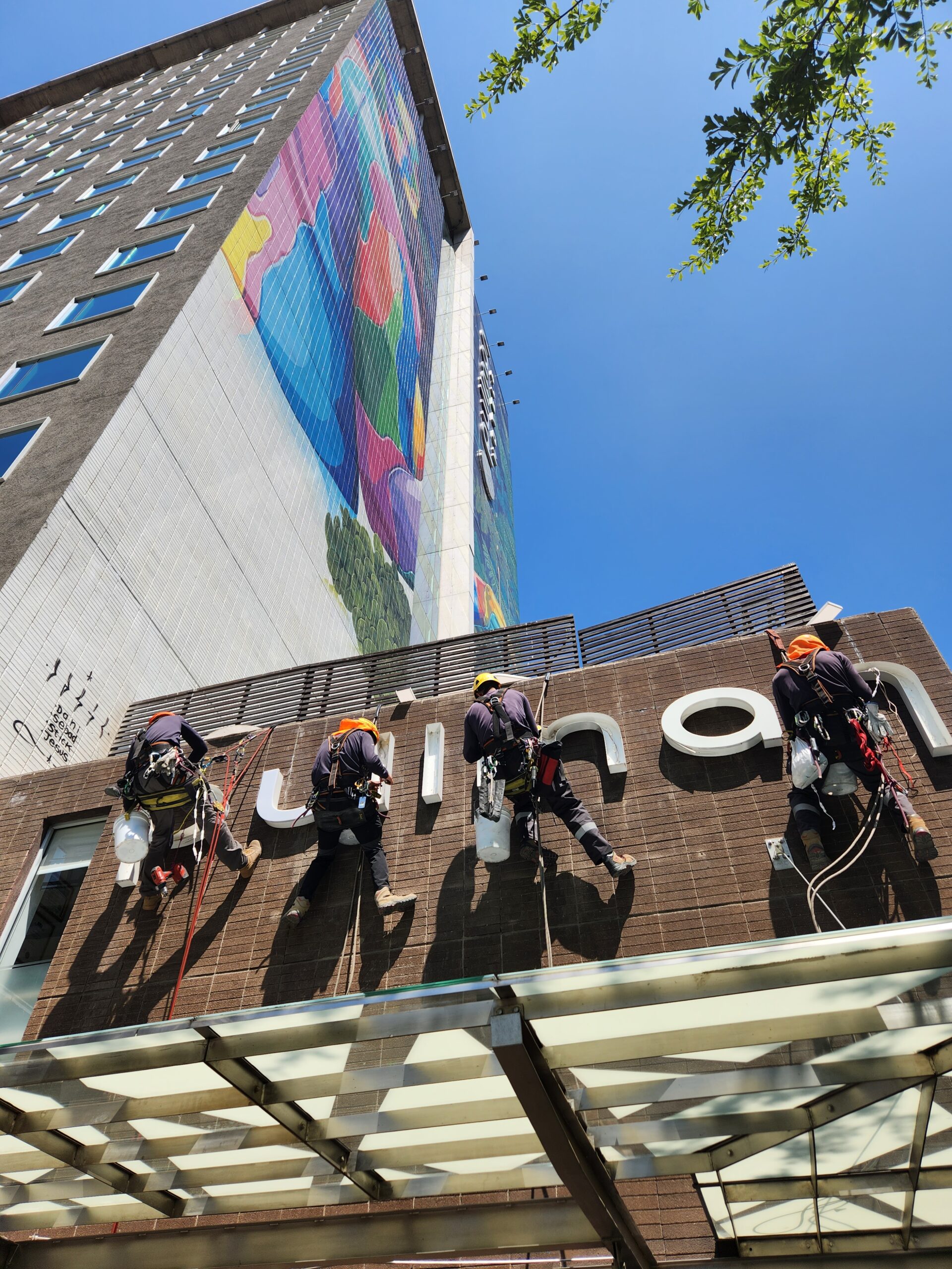 Los métodos tradicionales requieren andamios o grúas, incrementando tiempos de instalación, traslado y desinstalación, que a su vez aumentan la probabilidad de accidentes/exposición al riesgo. Nosotros optimizamos procesos con técnicas de suspensión y posicionamiento seguro, garantizando resultados óptimos en menores tiempos.